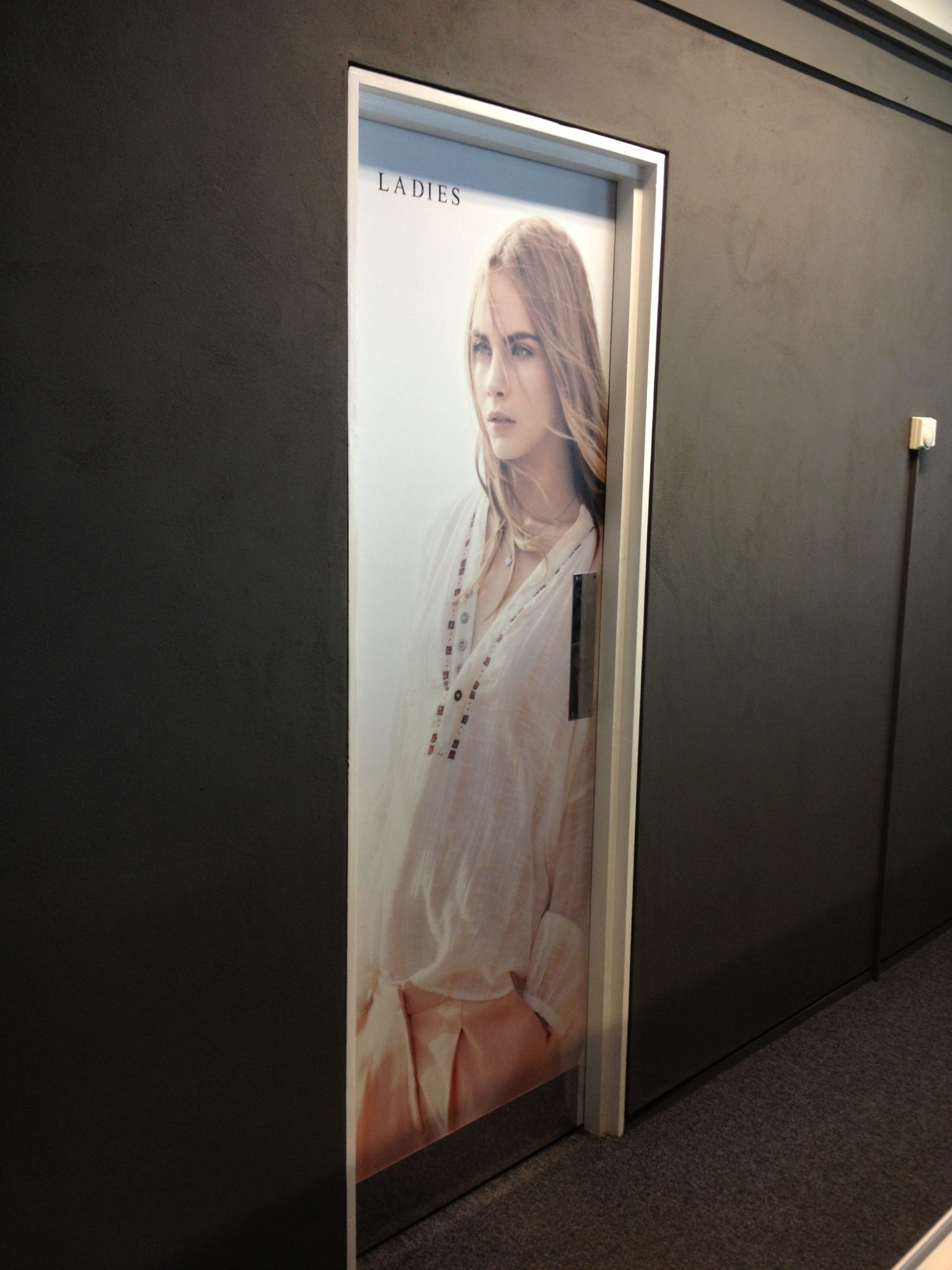 Interior Office Door Wraps Interior office doors wrapped with large photographic images to convey branding and corporate message of Zara (the clothing design and retailer) in their internal office headquarters. Murals and wallpaperDoor SignsOffice Signs Share this sign