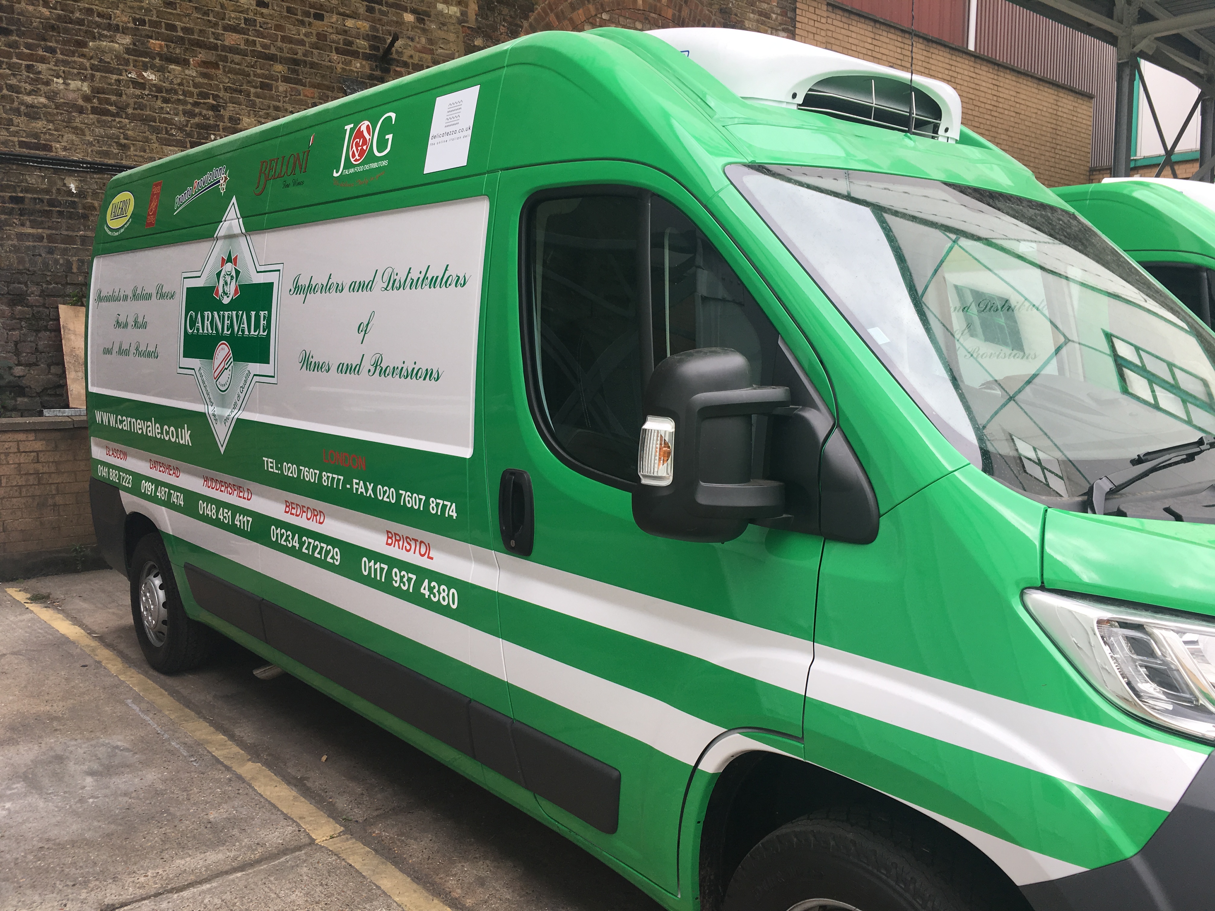 London-based Italian Food Distribution Van Sign We helped Carnevale decorate their large fleet of food distribution vehicles with logos, graphics and typography. Logos and digitally printed graphics applied individually. Van Signs Share this sign