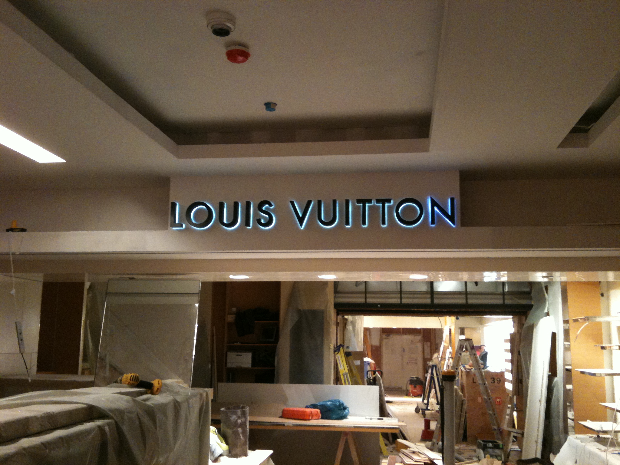 Back lit built up letters sign for Louis Vuitton for luxury concession shop in Harvey Nichols London.